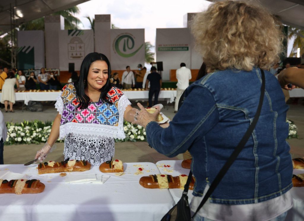 Previo al gran baile, la presidenta municipal cortó una gran Rosca de Reyes de 200 metros, donada por la tienda Chedraui, que compartió con las y los ciudadanos y turistas que se encontraban en el Parque Fundadores de la Ventana al Mar, para preservar esta importante tradición.