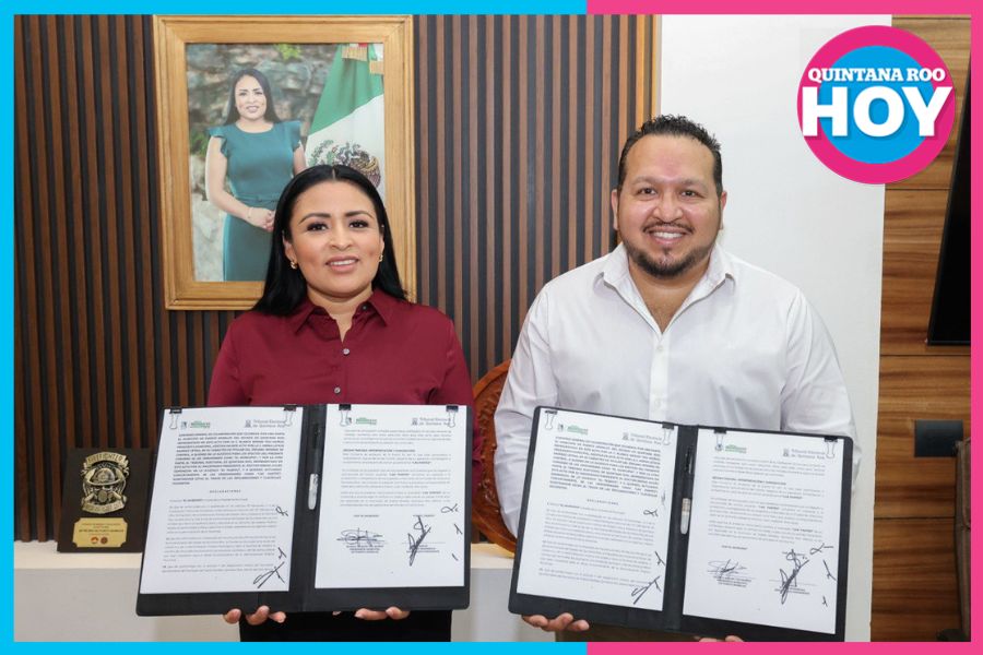 Puerto Morelos.— La presidenta municipal Blanca Merari Tziu Muñoz y el magistrado presidente del Tribunal Electoral de Quintana Roo (Teqroo), Sergio Avilés Demeneghi, firmaron un Convenio de Colaboración a favor de la democracia y los derechos electorales de las y los portomorelenses, en particular de quienes integran grupos en situación de vulnerabilidad.