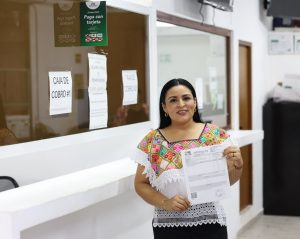 Puerto Morelos.— Luego de acudir a la Dirección de Ingresos de la Tesorería Municipal para pagar el Impuesto Predial correspondiente al ejercicio fiscal 2026, la presidenta municipal Blanca Merari Tziu Muñoz se manifestó contenta y agradecida con los contribuyentes que han respondido al llamado para contribuir.