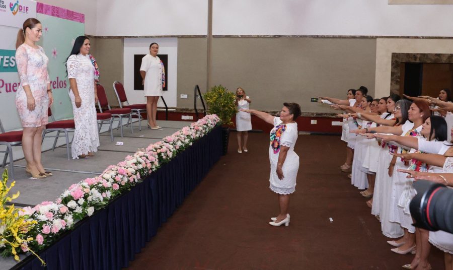 PUERTO MORELOS.- La presidenta municipal de Puerto Morelos, Blanca Merari Tziu Muñoz acompañó a la presidente honoraria del Sistema para el Desarrollo Integral de la Familia (DIF) de Puerto Morelos, Juanita Chacón Canché, en la toma de protesta del Voluntariado de este organismo, acto que se realizó en el Hotel el Cid de esta demarcación.