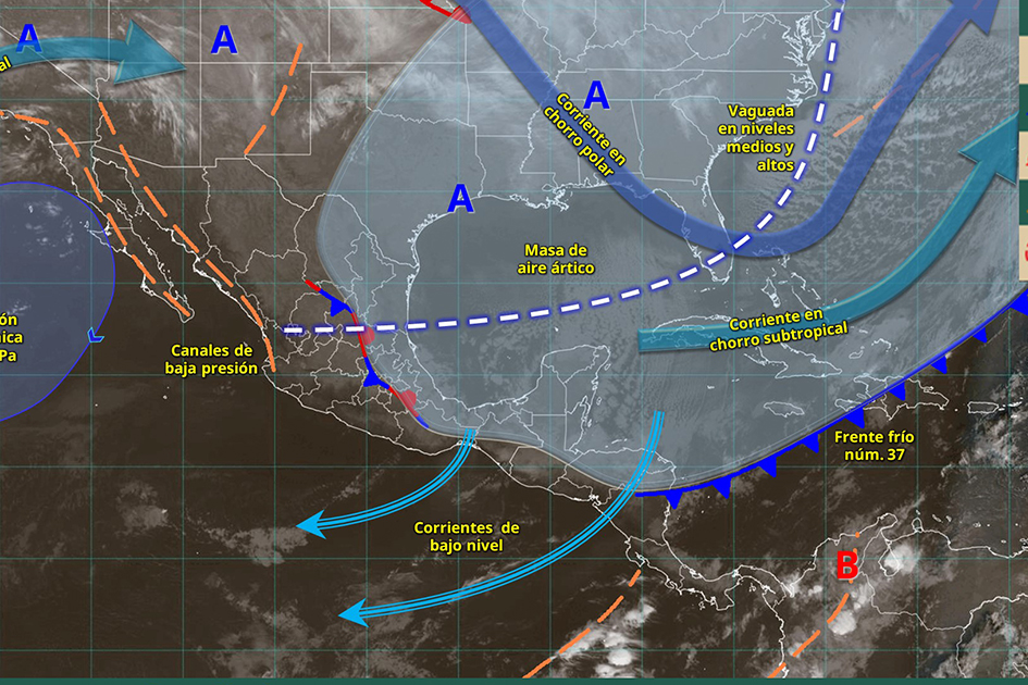 A nivel nacional, el amanecer será frío a gélido con posibles heladas en zonas altas del norte, noreste, centro, oriente y sureste del país, mientras que la masa de aire ártico comenzará a modificar gradualmente sus características térmicas.