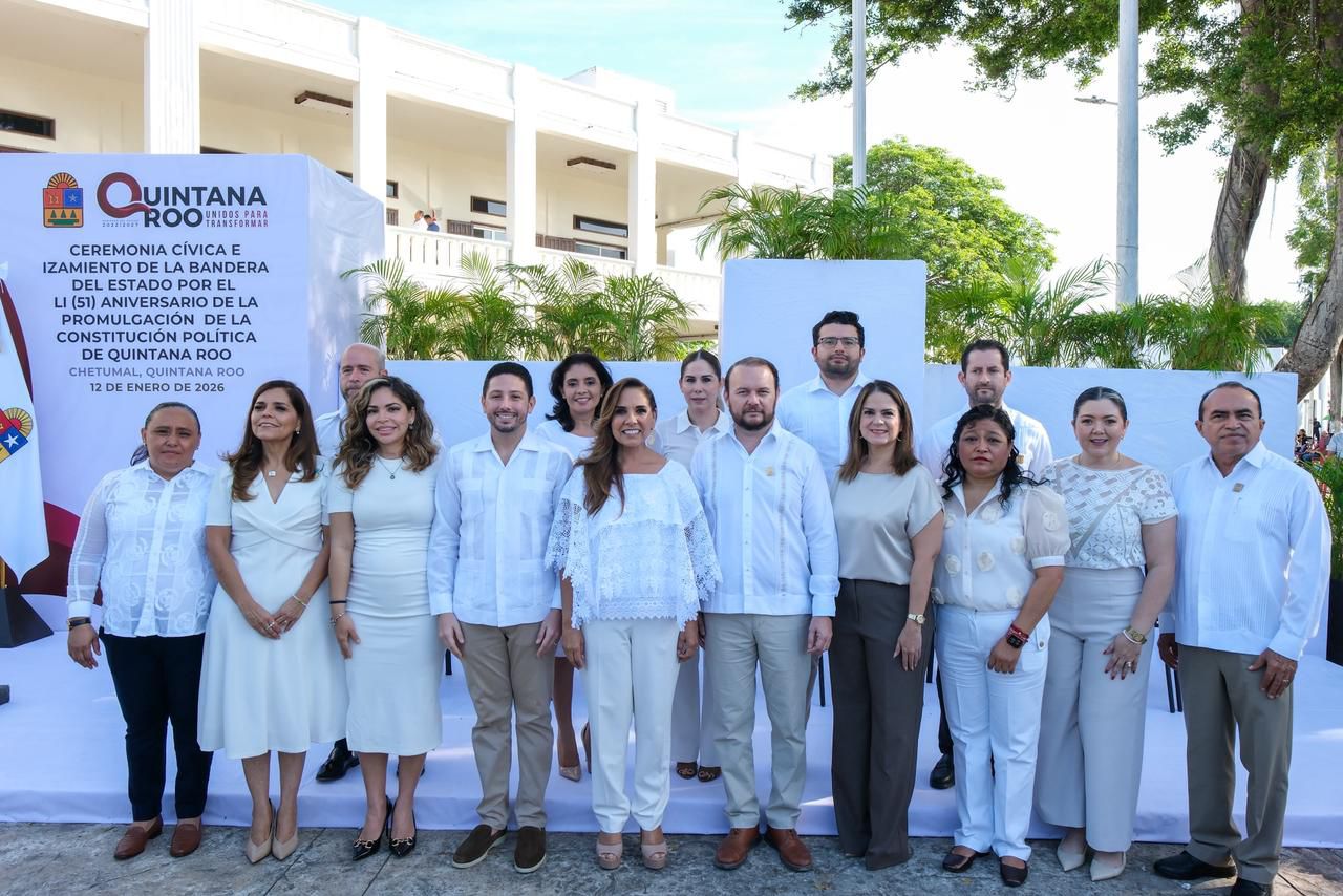 “Aquí, en Chetumal, nuestra capital y sede de los poderes públicos, recordamos los orígenes del marco jurídico que sostiene a un estado joven, pero fuerte, progresista y profundamente humanista. Nuestra Constitución representa un pacto vivo entre la sociedad y el poder público”, expresó Mara Lezama.