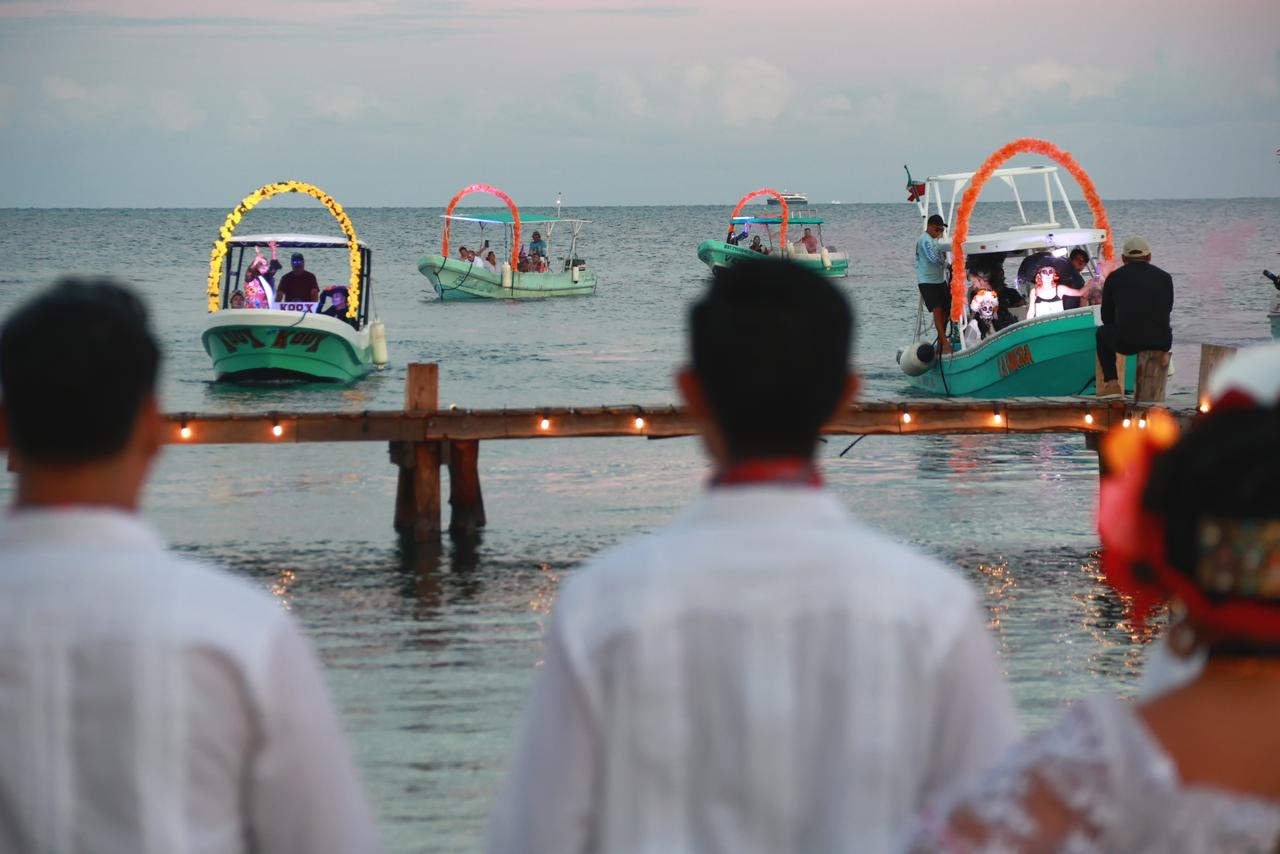 Desde el muelle de la calle 45, los ciudadanos y visitantes disfrutaron de la procesión marítima, donde las luces de las embarcaciones iluminaron el mar y el aroma del copal creó un ambiente de profunda armonía y conexión espiritual.