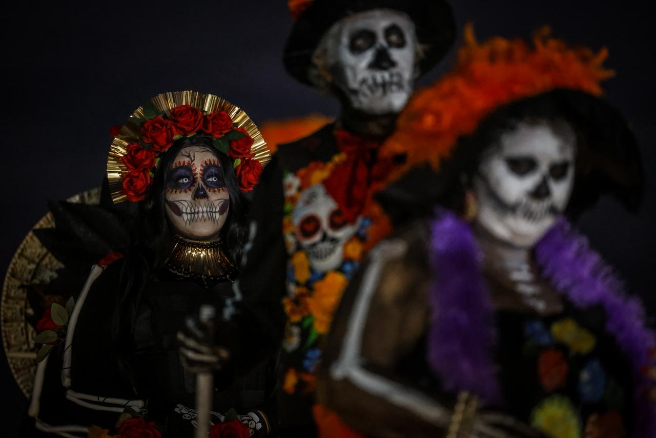 Seguido de esta representación, los asistentes se sumaron al espectacular desfile de catrinas y catrines, en la principal arteria de esta subdelegación, que desbordó creatividad, elegancia y orgullo por nuestras tradiciones mexicanas.