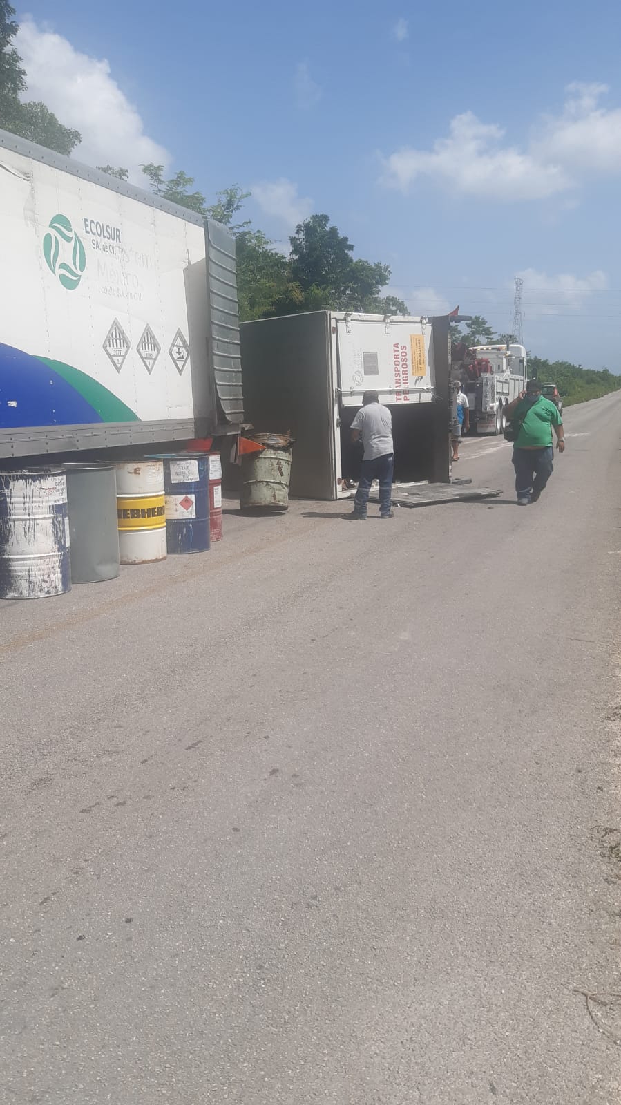 CANCÚN. – Una fuerte movilización policíaca y de los cuerpos de emergencia se registró la tarde de este martes en la colonia irregular Tres Reyes, luego que se registrara la volcadura de un camión que transportaba residuos tóxicos.