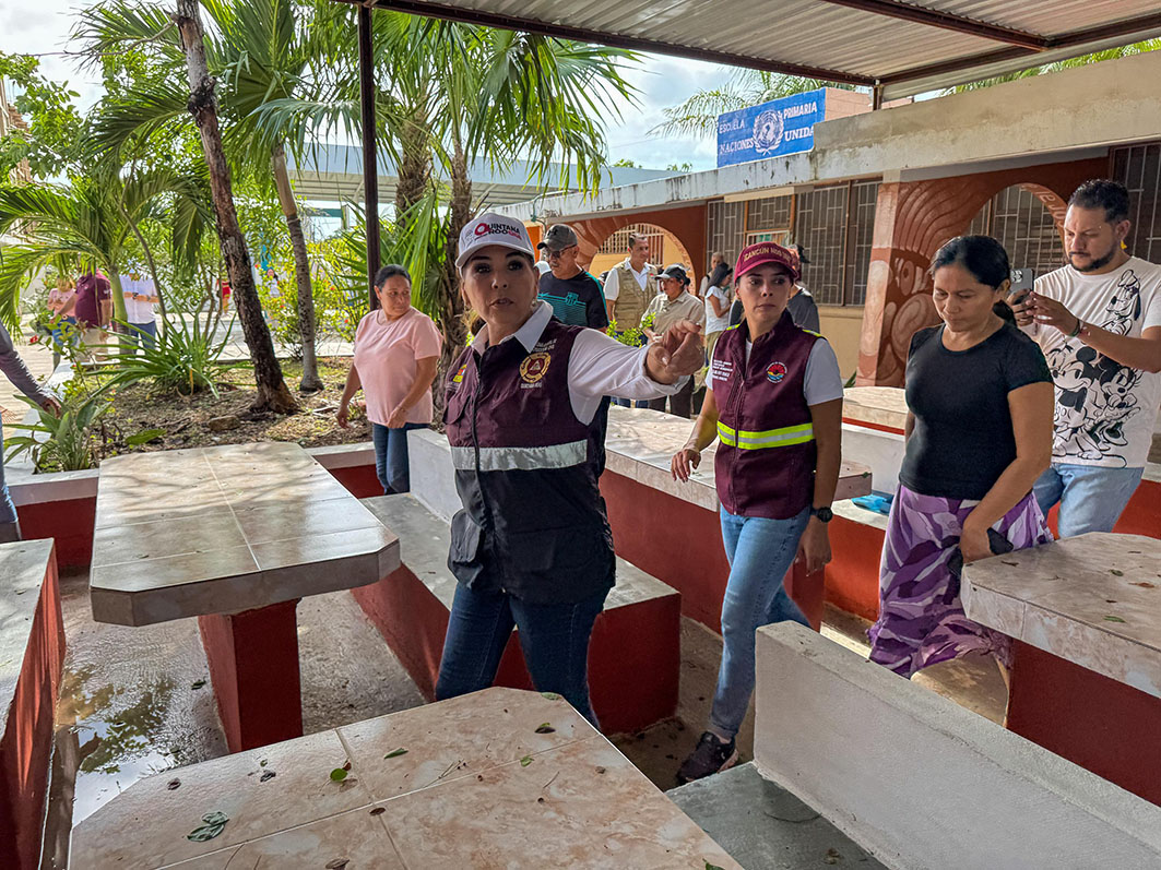 Acompañada de madres de familia, la gobernadora Mara Lezama explicó que la decisión de suspender las clases en Benito Juárez responde a cuidar a las niñas y los niños, pues si bien salió el sol, las condiciones de algunas escuelas requieren atención, en bardas caídas, revisión de energía eléctrica, servicios de agua, etc.
