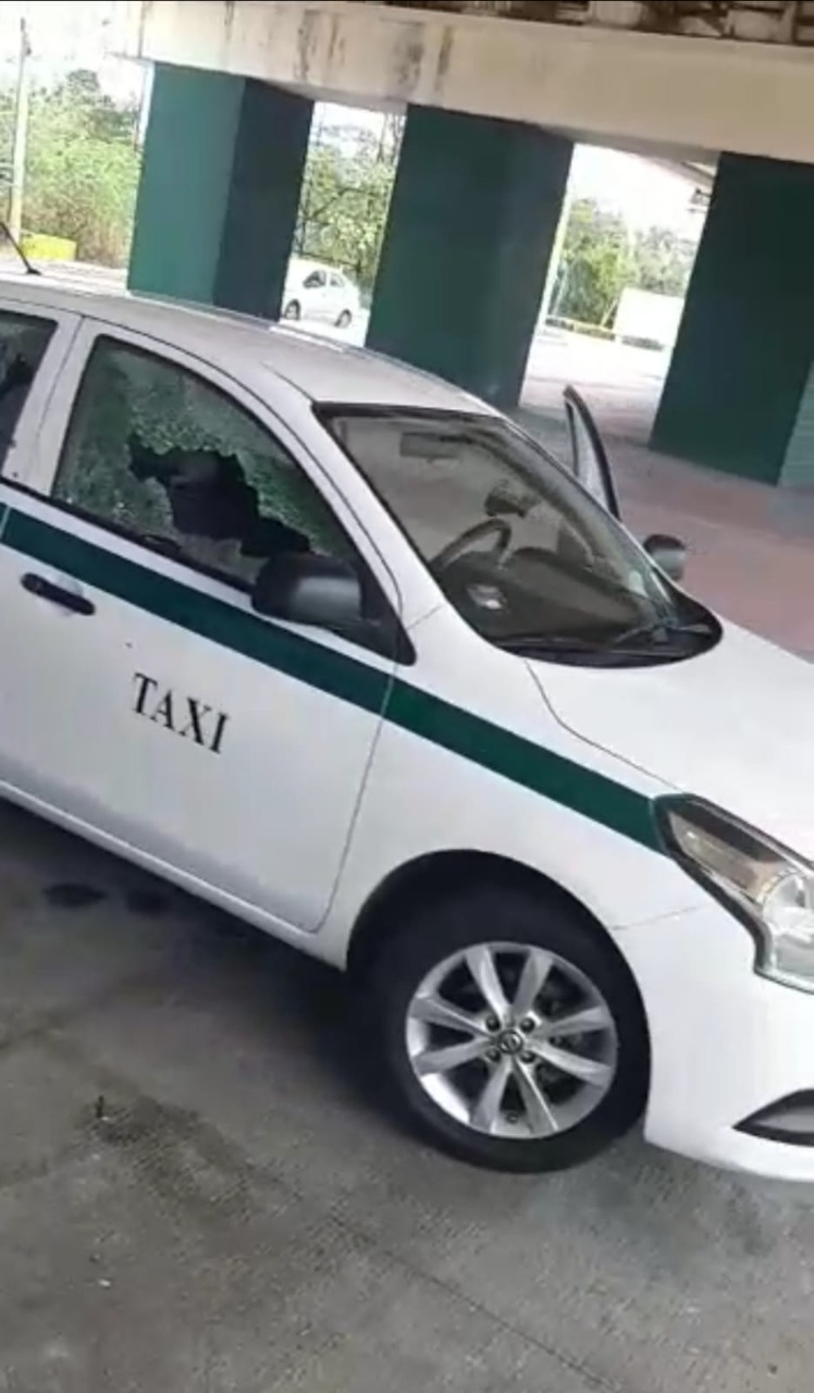 • El taxi quedó con los cristales rotos.
