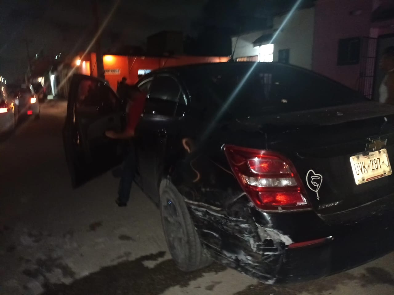 El choque ocurrió con un vehículo negro Chevrolet Sonic estacionado frente a un domicilio. Los residentes salieron al escuchar el fuerte impacto y observaron que el taxista era responsable del daño al vehículo estacionado.