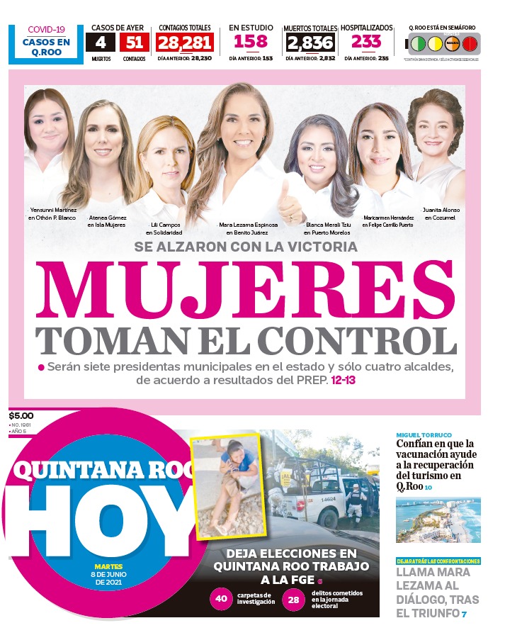 CANCÚN. Con base al conteo del 100% de la boletas electorales en el Programa de Resultados Electorales Preliminares (PREP) 2021 del Instituto Electoral de Quintana Roo (Ieqroo), serán siete municipios del estado los que serán gobernados por mujeres, lo cual refleja un claro empoderamiento de quienes por años han luchado para avanzar en la política; las próximas presidentas municipales son: María Elena Hermelinda Lezama Espinosa por Benito Juárez; Juanita Obdulia Alonso Marrufo en Cozumel; Maricarmen Candelaria Hernández Solís en Felipe Carrillo Puerto; Teresa Atenea Gómez Ricalde en Isla Mujeres; Yensunni Idalia Martínez Hernández en Othón P. Blanco; Roxana Lili Campos Miranda en Solidaridad y Blanca Merari Tziu Muñoz en Puerto Morelos.