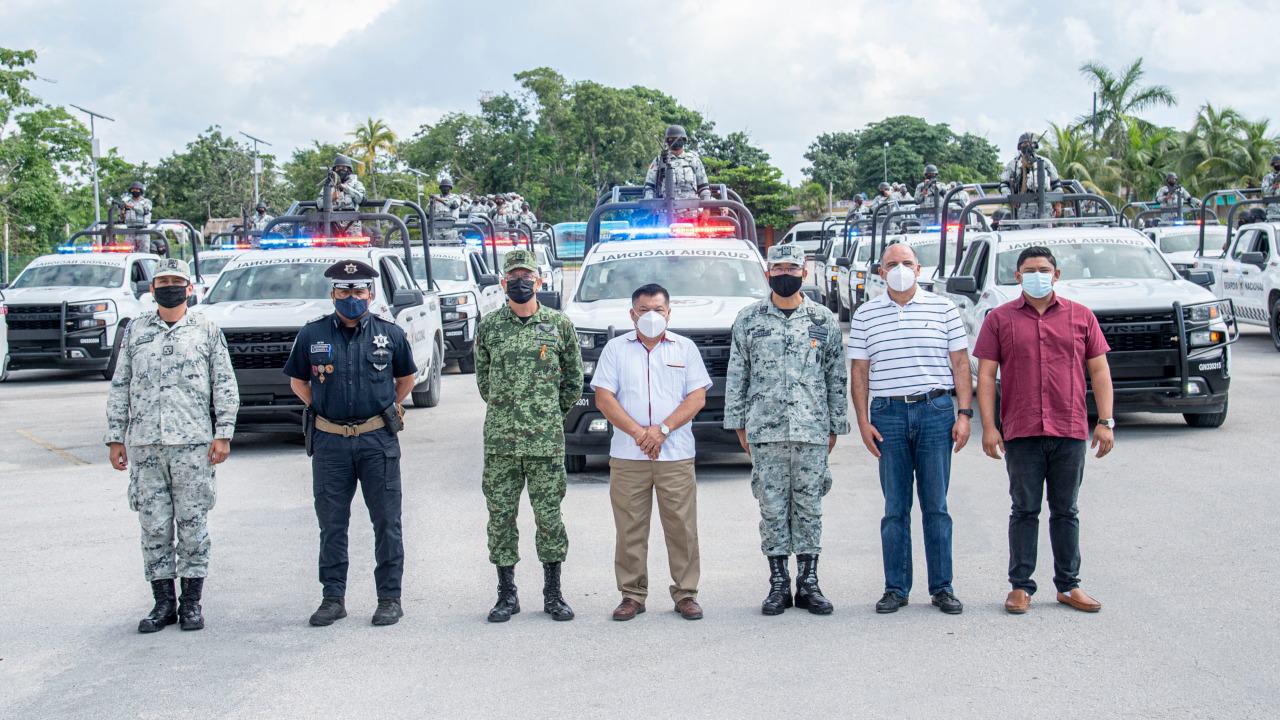 El alcalde Marciano Dzul Caamal y el Cmte. de la 34/a. Z.M, General Roberto Pérez Ceja, encabezaron el despliegue de dichos elementos que llegaron al municipio a sumarse a las actividades operativas territoriales.