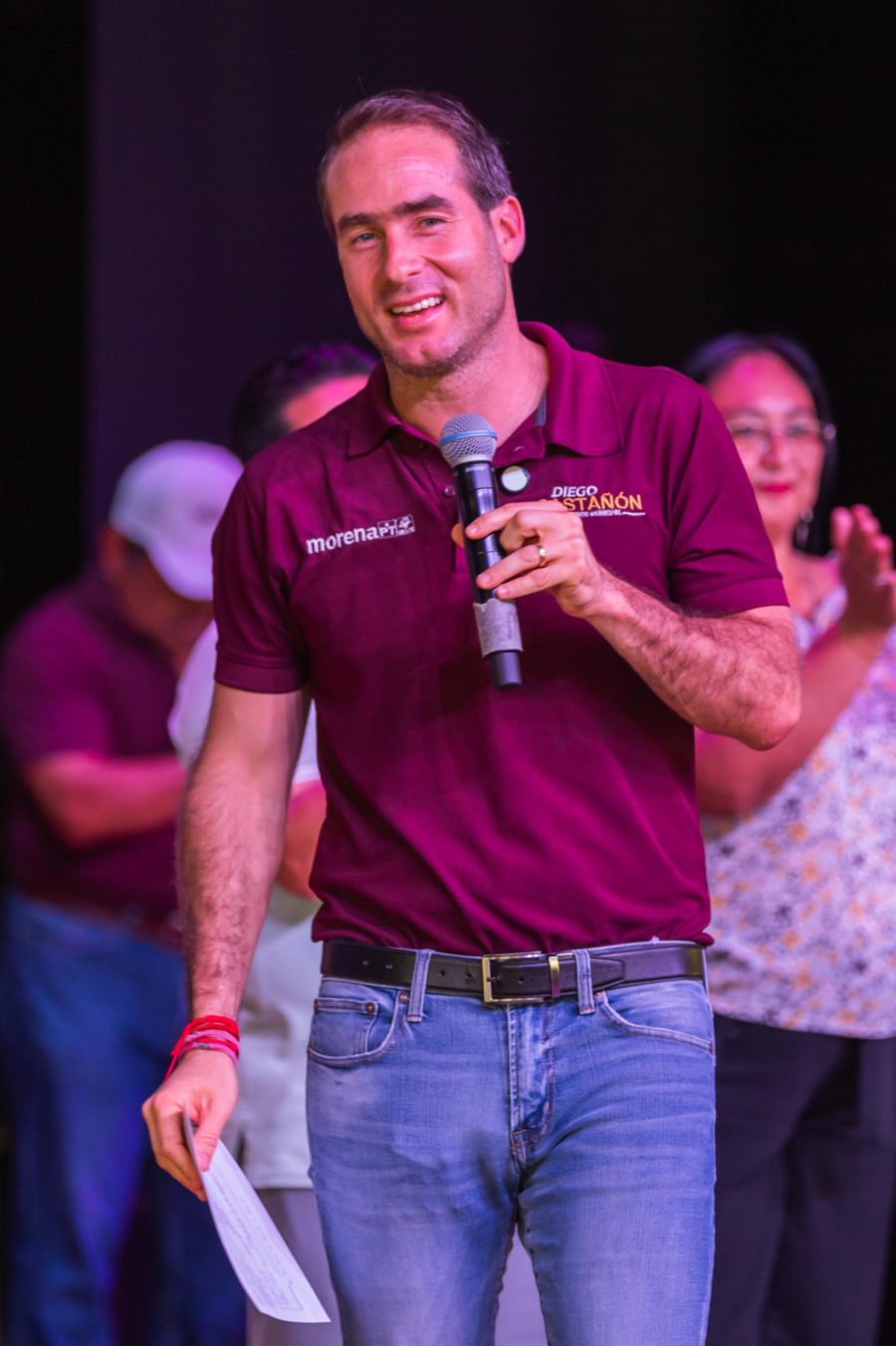 En el encuentro, Diego Castañón hizo énfasis a obras monumentales como el el Aeropuerto Internacional de Tulum y el Tren Maya, ambas generan empleos gracias a la visión de los gobiernos de Morena y aliados.