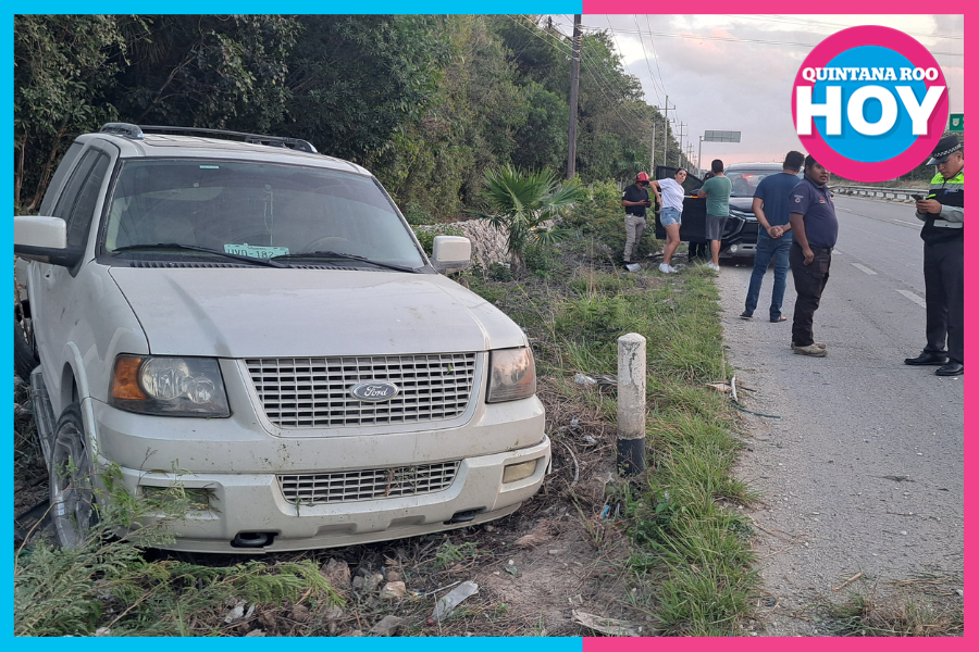 Tulum.- Un aparatoso accidente vehicular se registró sobre la carretera federal en el tramo Playa del Carmen–Tulum, luego de que el conductor de una camioneta tipo Expedition, color arena y con placas del estado de Quintana Roo, perdiera el control de la unidad al intentar realizar una maniobra de rebase.
