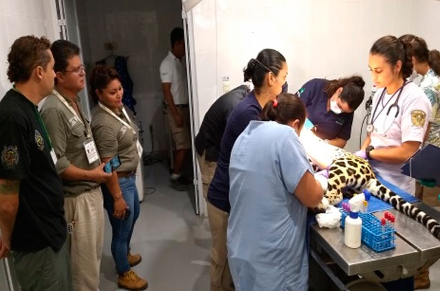 Para el cuidado y manejo especial de esta especie se solicitó apoyo del equipo de veterinarios especialistas en manejo de fauna silvestre del Área de Salud Animal del Parque Ecoarqueológico Xcaret, así como de personal de la Alianza Nacional para la Conservación del Jaguar, para maniobras de contención y posterior valoración médico veterinaria en las instalaciones de la UMA a la que fue trasladado.