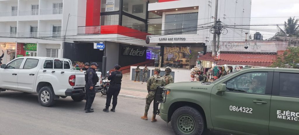 Tulum.- Un fuerte operativo de cateo en un establecimiento de Plaza Faeli, ubicada sobre la avenida Tulum entre Beta Norte, generó expectación entre ciudadanos y turistas la tarde de este lunes. Autoridades de los tres niveles de gobierno desplegaron un dispositivo de seguridad con más de 15 unidades oficiales en pleno centro de la ciudad.