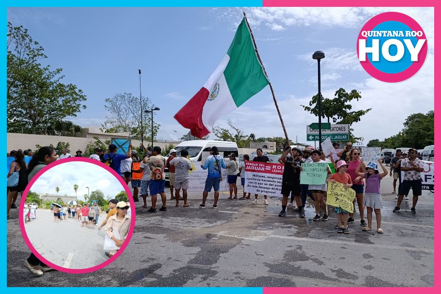 TULUM.– Un grupo de alrededor de 400 habitantes, comerciantes y tour operadores llevó a cabo un bloqueo en el acceso norte de Tulum, a la altura de la glorieta que conecta con la zona arqueológica, en protesta por los efectos que ha generado la operación del Parque del Jaguar.