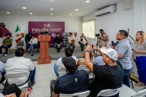 TULUM. — Durante su conferencia semanal, el presidente municipal Diego Castañón Trejo se refirió a las denuncias ciudadanas por cobros de 300 pesos realizados a comerciantes en la delegación de Chemuyil, supuestamente en coordinación con la Dirección de Comercio del Ayuntamiento.