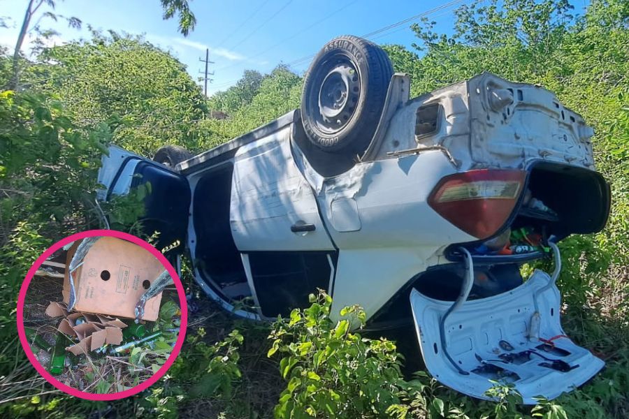 Tulum.- Una familia que viajaba sobre la carretera estatal Tulum–Cobá estuvo a punto de perder la vida luego de que el conductor del vehículo en el que se trasladaban perdiera el control y sufriera una volcadura a la altura del cenote Aktun Ha.