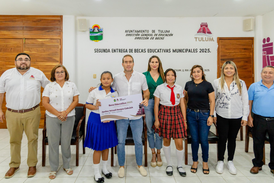 Tulum.- Con la entrega del segundo periodo de mil becas municipales, el gobierno de Tulum reafirmó su compromiso con la educación, beneficiando a estudiantes de nivel primaria, secundaria, media superior y superior, así como a alumnos con discapacidad.
