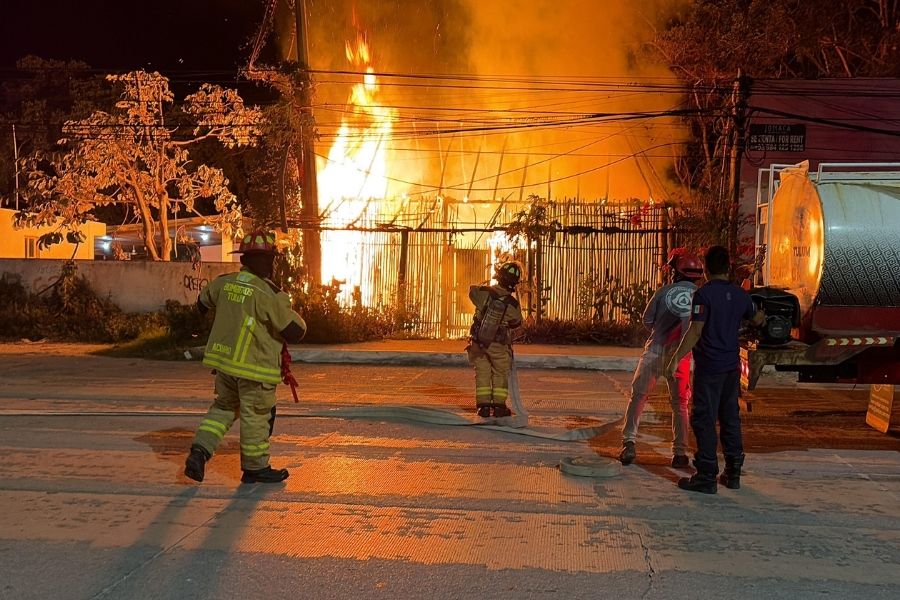 Tulum.- La tranquilidad de la madrugada en Tulum se vio interrumpida por una serie de incendios que se registraron casi de manera simultánea en diferentes puntos de la ciudad, lo que provocó la activación de códigos rojos y el despliegue inmediato de cuerpos de emergencia.