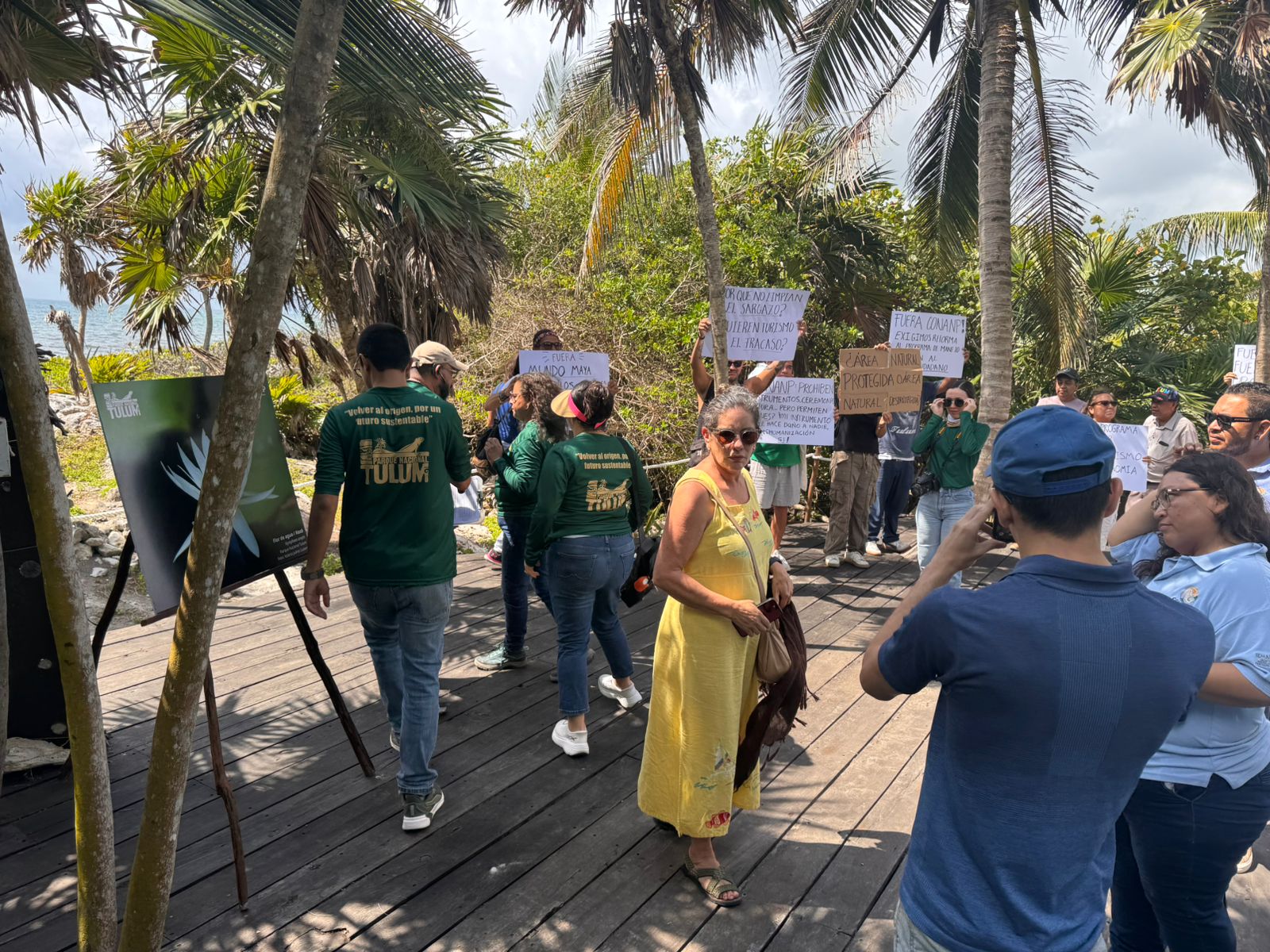 Trabajadores turísticos se manifestaron en Tulum durante el aniversario del Parque Nacional, denunciando pérdidas de hasta 70% en ingresos por menor afluencia y costos elevados.