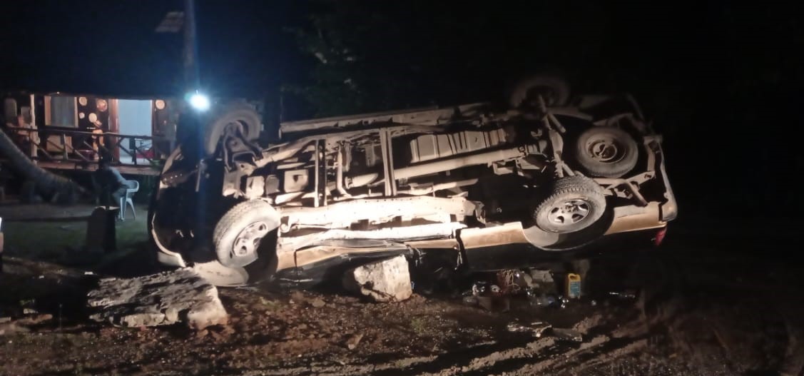 Los hechos ocurrieron alrededor de las 11:30 de la noche en el kilómetro 14.5, cuando el conductor de una camioneta marca Ford, color negro, perdió el control de la unidad al estallarle la llanta delantera derecha.