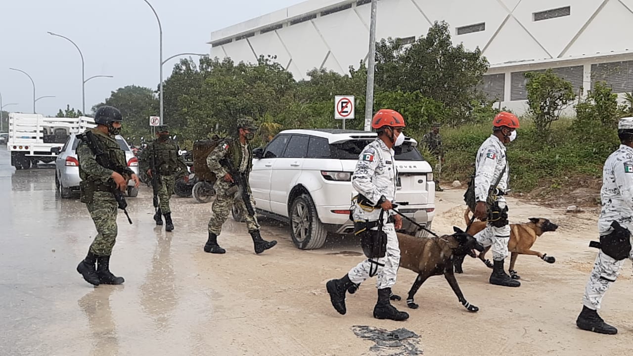 Isla Mujeres. Elementos de la Guardia Nacional con sus binomios realizaron ayer una inspección en el hotel Planet Hollywood que se encuentra en construcción en la zona continental de Isla Mujeres, en el tramo conocido como Costa Mujeres y sus alrededores , tras las diversas denuncias que se han presentado en redes sociales desde principios de este año, respecto a los trabajadores de ese hotel cuyos familiares desconocen su paradero.