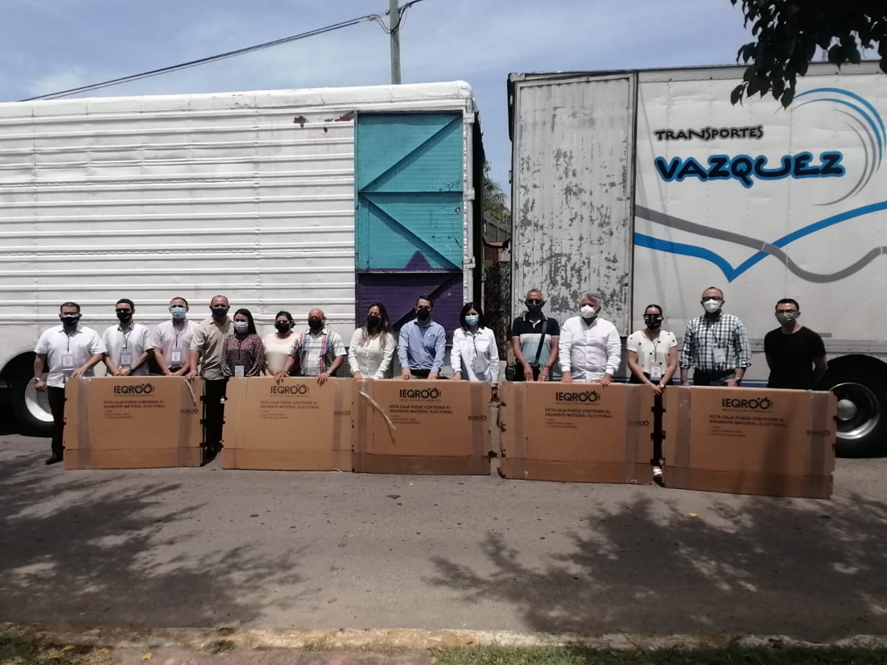 Entrevistada al respecto, la Consejera Presidenta Mayra San Román Carrillo Medina, señaló que, de acuerdo con el calendario de recepción y distribución de material y documentación electoral, hoy llegó a las instalaciones del Ieqroo, lo correspondiente a material electoral, es decir; 2 mil 372 cajas paquete electoral, 2,372 cajas contenedoras, 2,372 urnas electorales, 2,372 bases porta urnas y 2,372 cintas de seguridad.
