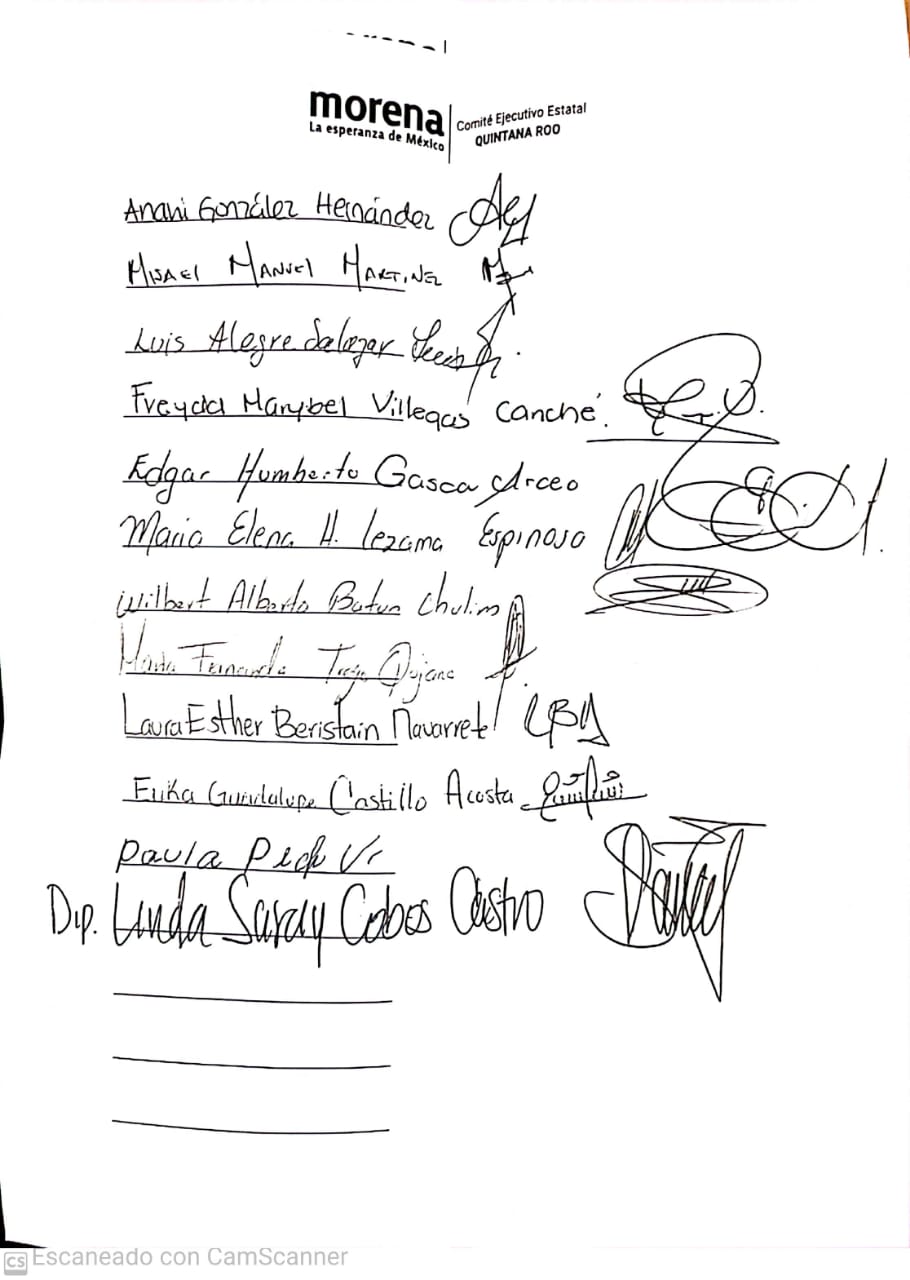 En la reunión previa, que fue privada, donde se firmó el acuerdo entre senadores, diputados federales, locales y los tres alcaldes. Estuvieron presentes Jorge Parra, Otoniel Segovia, Mildred Ávila, Jose Luis Pech, Liliana Castro, Laura Beristain, Euterpe Gutiérrez, Anahí González, Óscar Cantón, Luis Alegre, Marybel Villegas, Edgar Gasca, María Elena Hermelinda Lezama (Mara), Wilberth Batún, María Fernanda Trejo, Érika Castillo, Paula Pech, Linda Saraí Cobos. No se contó con la firma de la diputada federal Patricia Palma Olvera y del diputado local, Luis Fernando Chávez Zepeda.