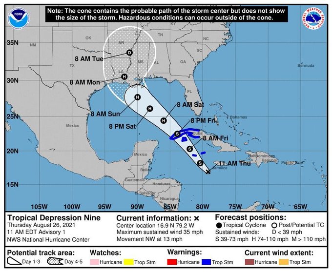 A decir del Centro Nacional de Huracanes (NHC) informó que la zona de baja presión ubicada en el Mar Caribe se convirtió en la Depresión Tropical Nueve, luego de que esta maána del jueves 26 de agosto aumentó a 90 por ciento en las próximas 48 horas.