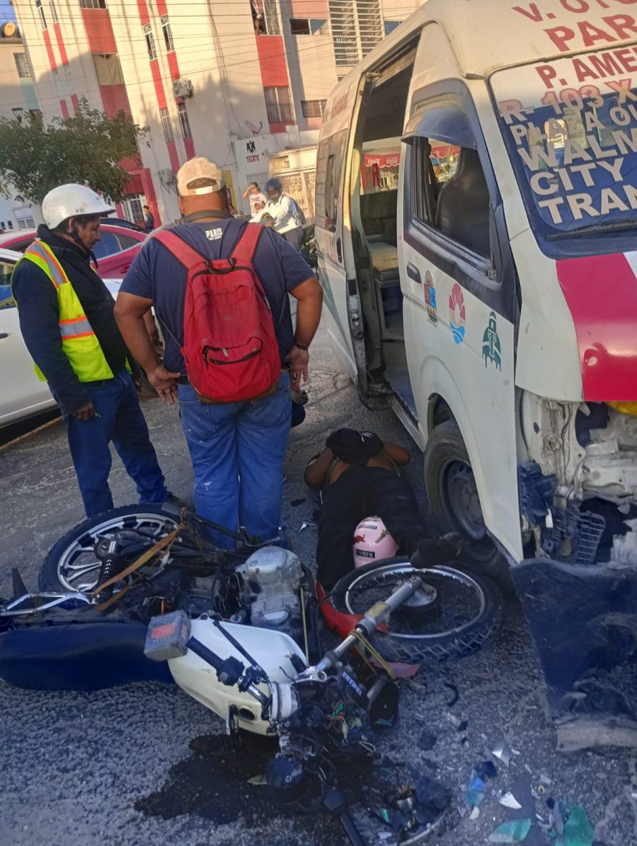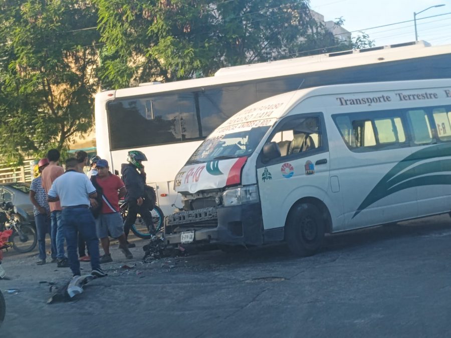 CANCÚN.- Un grave accidente de tránsito se registró en la intersección de las avenidas Orquídeas y Las Playas, en la Supermanzana 107, cuando el conductor de una camioneta tipo Urban colisionó con un motociclista que transitaba en dirección opuesta.
