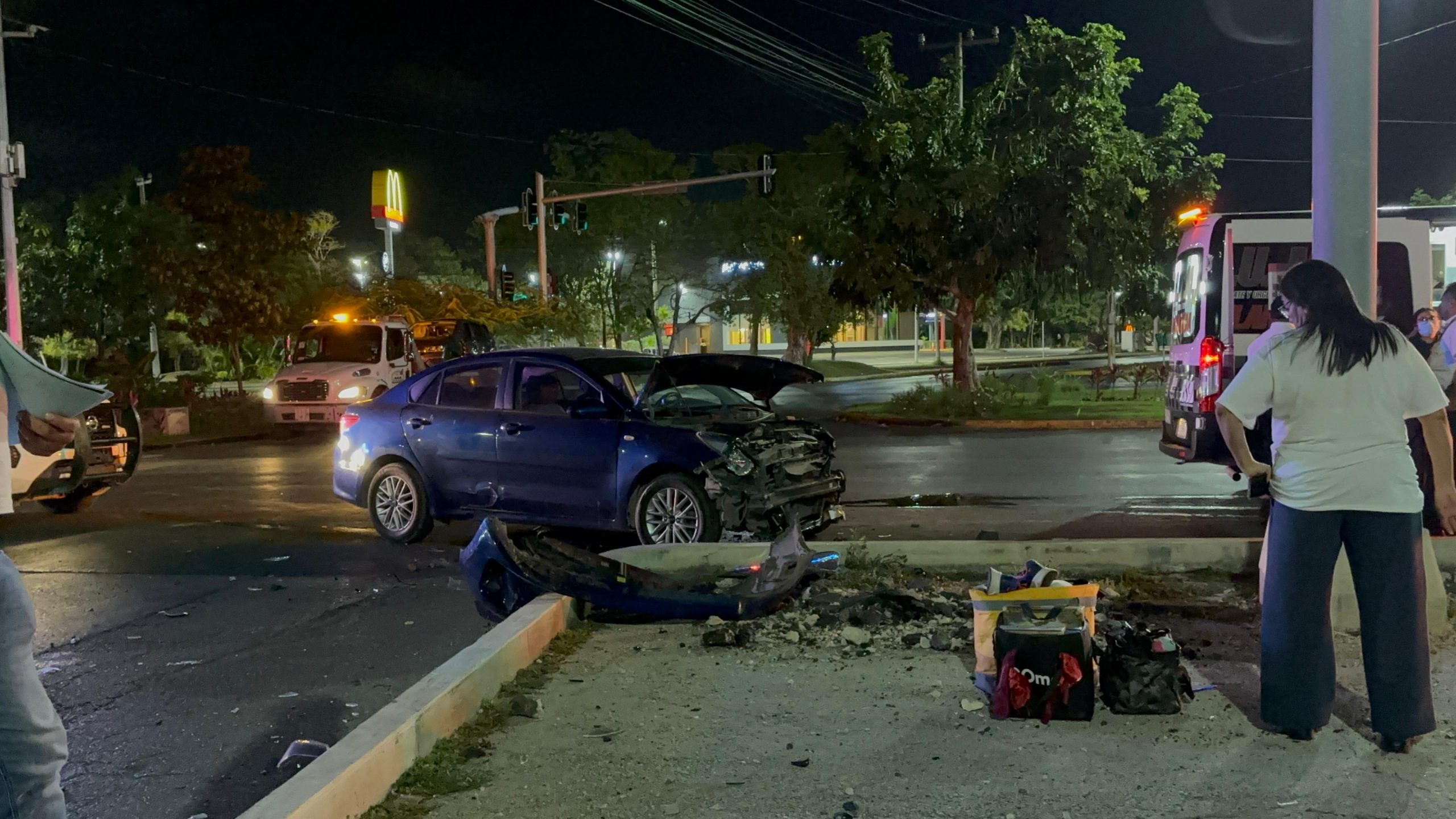 Un fuerte accidente en Cancún dejó un vehículo volcado en la intersección de Kabah y Nichupté. Paramédicos atendieron a los involucrados.