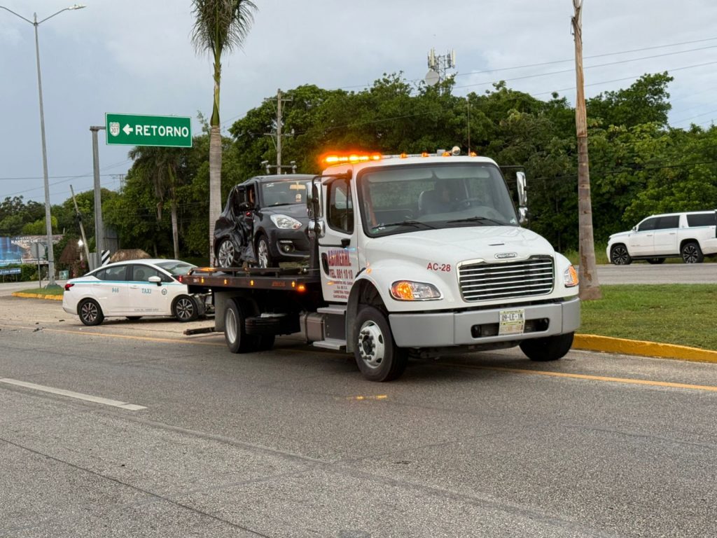 Playa del Carmen.- Un vehículo particular se estrelló en contra de un taxi del sindicato “Lázaro Cárdenas del Río, en la carretera federal 307, frente al hotel Barceló, con saldo de una persona lesionada y la completa destrucción de ambos coches.