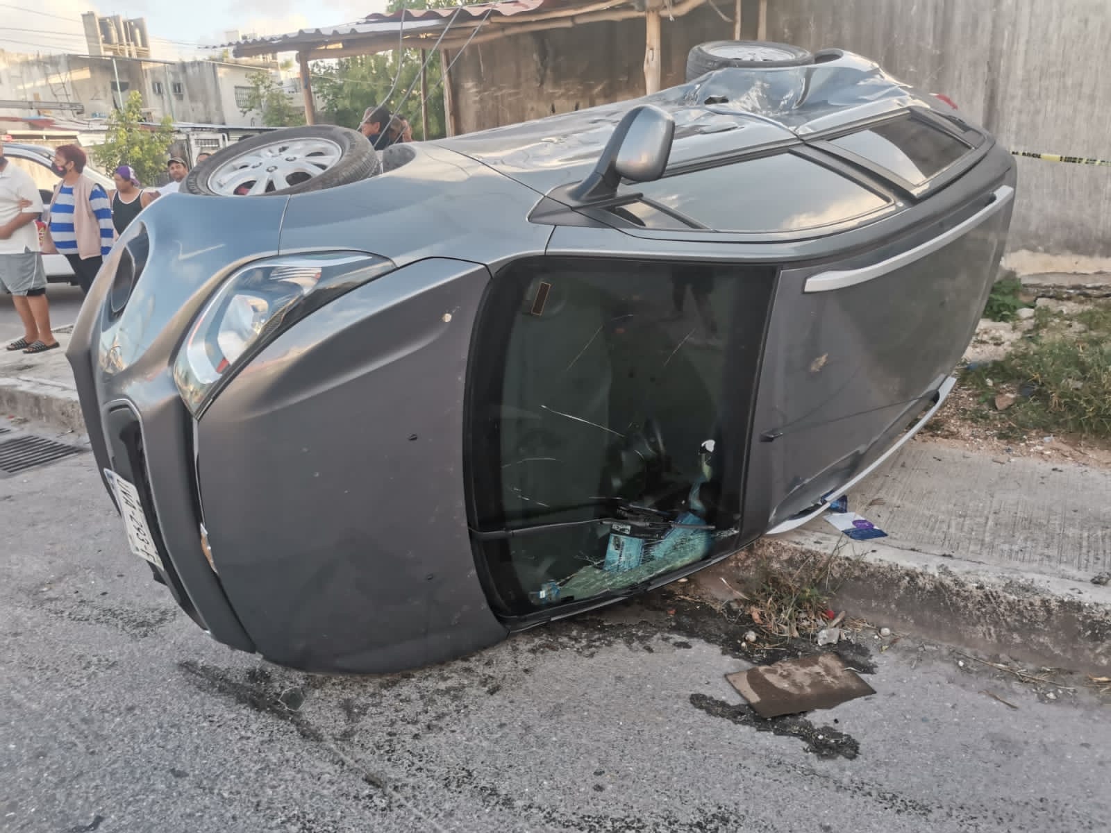 Cancún .- Una aparatosa volcadura se registró esta tarde alrededor de las 6:20 PM en la avenida Jacinto Canek con calle Narciso en la región 215