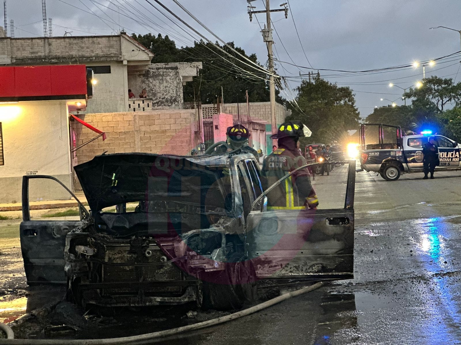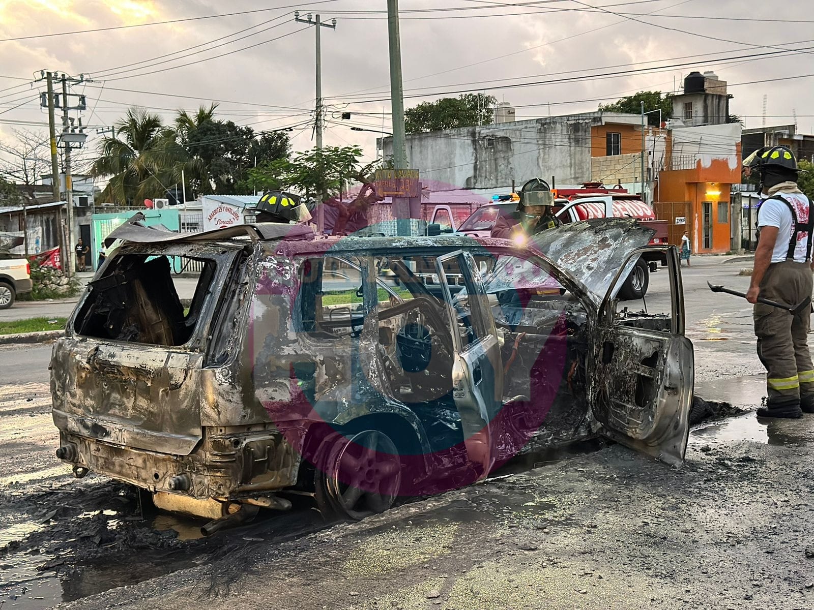 CANCÚN.- En un dramático incidente, los valientes bomberos de Cancún respondieron con prontitud a un incendio que consumió un vehículo aparentemente abandonado cerca de la avenida Costa Maya, casi esquina con calle 90, en la región 227.