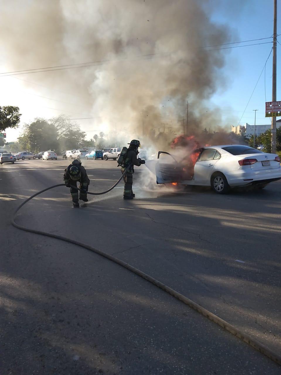 De acuerdo con datos extraoficiales, el conductor circulaba con dirección al sur de la ciudad, cuando un presunto corto circuito provocó que se comenzara a quemar el motor, propagándose al resto del auto.
