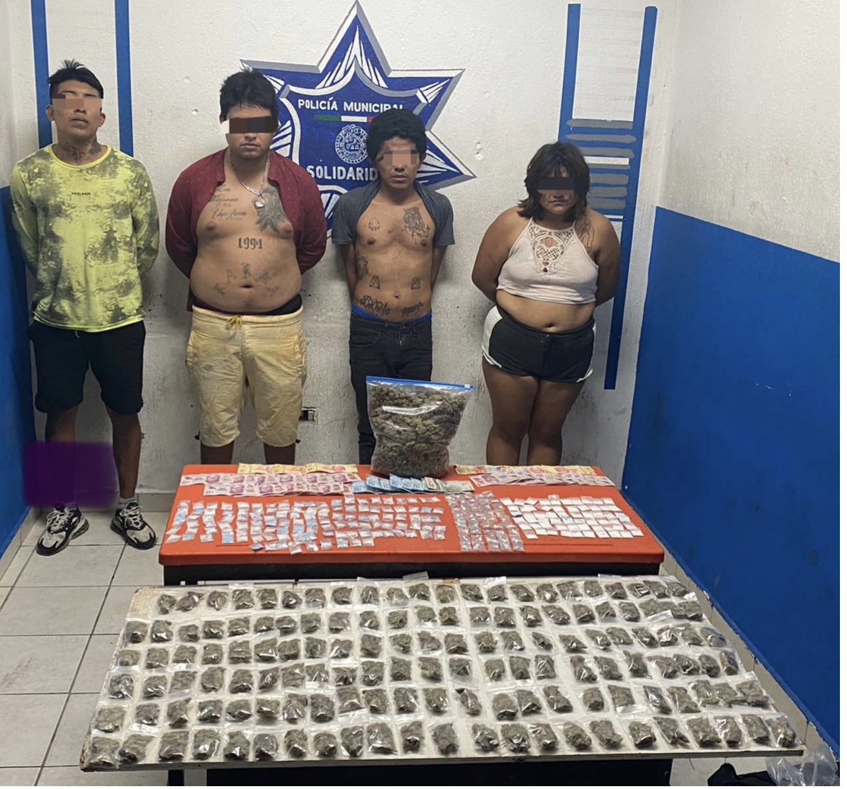 Fueron hallados en el interior de un taller, encontraron a tres hombres y una mujer, por lo que procedieron a detenerlos, además tenían bajo su posesión más de 360 dosis de narcóticos
