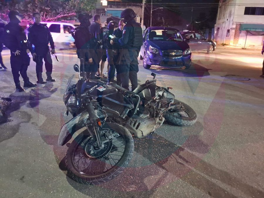 Arrolla automovilista a pareja de policías en moto en la avenida Niños Héroes de Cancún