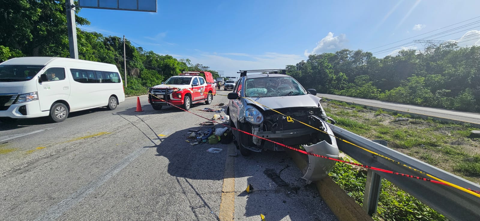 Cancún.- Un automovilista perdió la vida esta tarde luego de que su vehículo colisionara de frente contra una valla de contención en el kilómetro 318 de la carretera federal 307, cerca del acceso a Puerto Morelos.