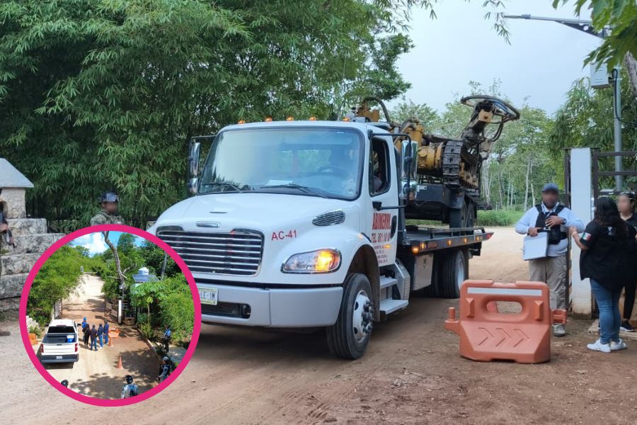 Puerto Morelos.- La Fiscalía General del Estado, en colaboración de la Secretaría de Marina y Guardia Nacional, cumplimentó una orden de cateo en un predio ubicado en la vía Puerto Morelos – Leona Vicario “Ruta de los Cenotes”, por posibles delito contra el ambiente y desarrollo urbano en prejuicio de la sociedad.