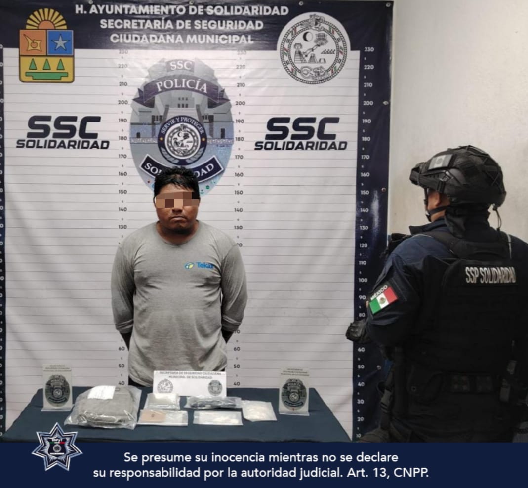 La detención la hizo la Policía Municipal de Solidaridad realizó cuando realizaban vigilancia y labor de prevención de delitos en el fraccionamiento Villas del Sol.
