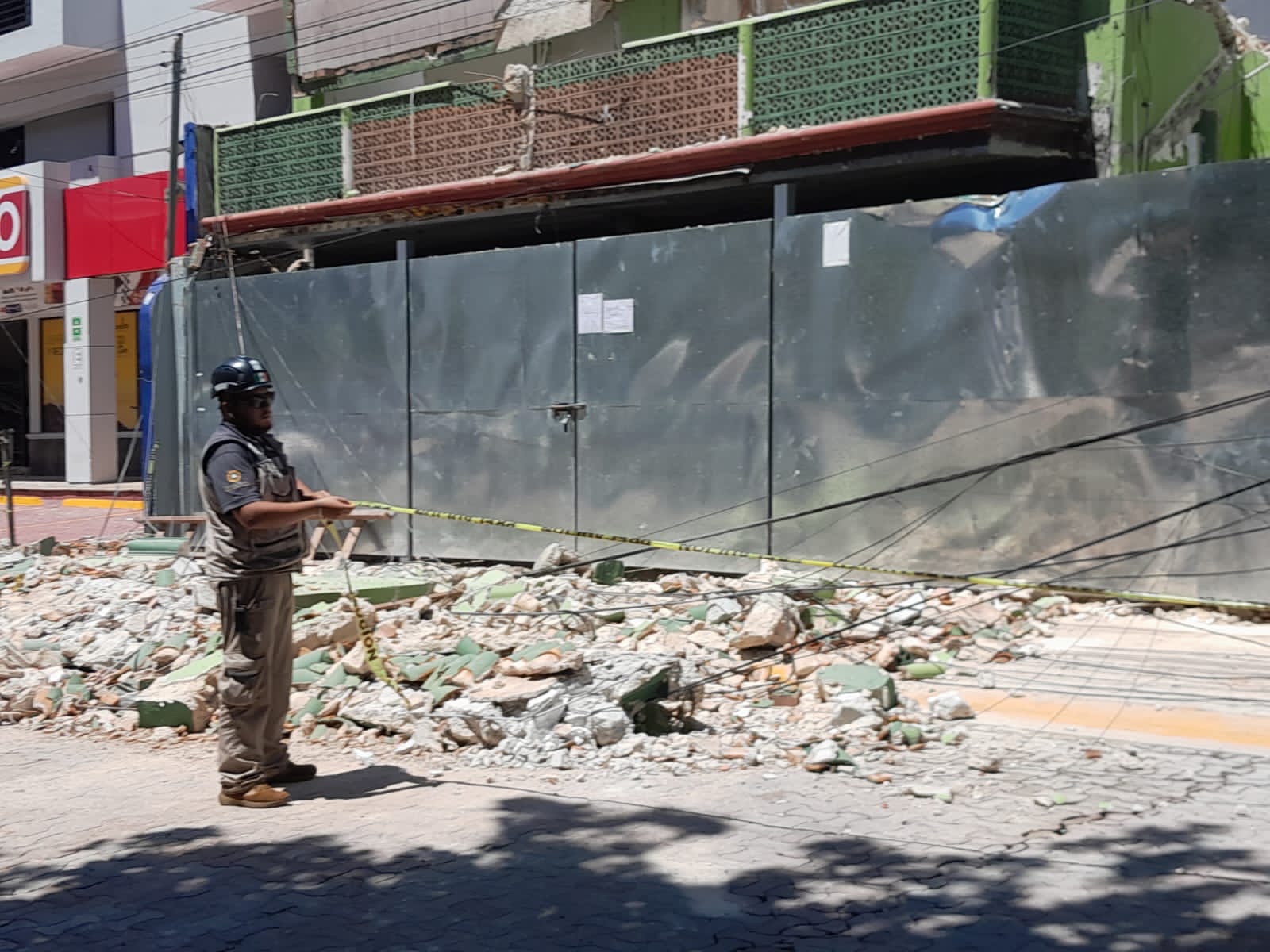 Playa del Carmen.- La falta de precaución al derribar el muro de un edificio que se encuentra en remodelación ubicado en pleno centro de la ciudad, provocó que los escombros de éste cayeran sobre los cables de telefonía, dañando también la banqueta.