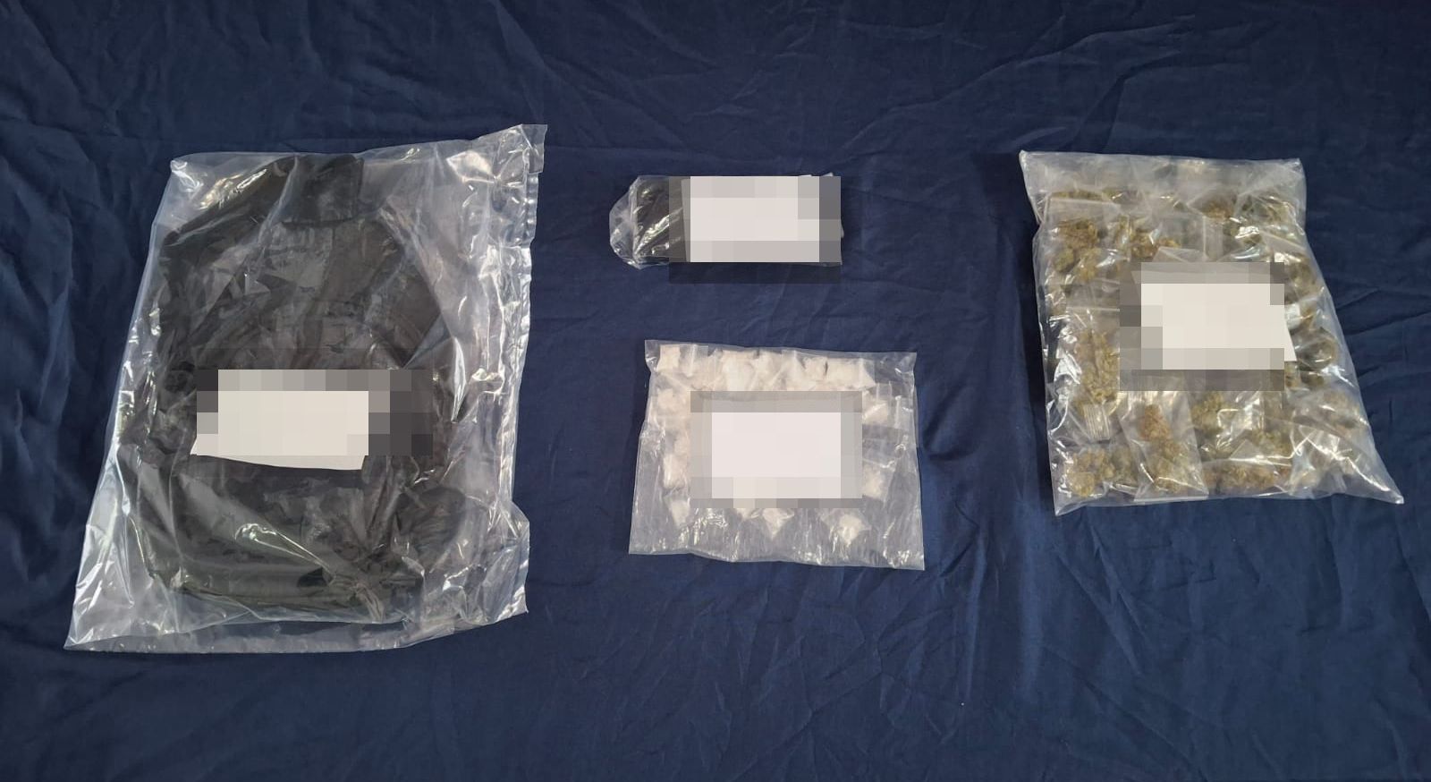 Tras realizar la inspección correspondiente, se le aseguraron una mariconera, 52 bolsitas con vegetal verde con características similares a la marihuana, 51 bolsitas con fragmentos cristalinos con características similares al cristal, así como un teléfono celular.