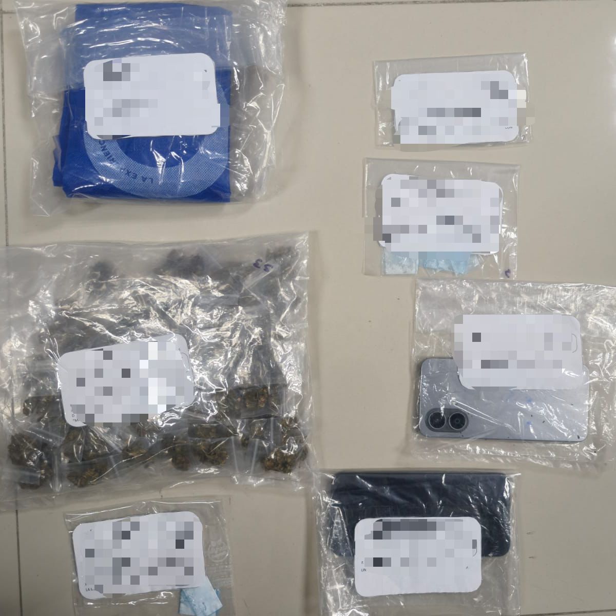 El segundo sujeto fue interceptado y, tras una revisión, se le aseguraron 68 bolsitas con presunta marihuana, así como dosis con características de cocaína, piedra y cristal.