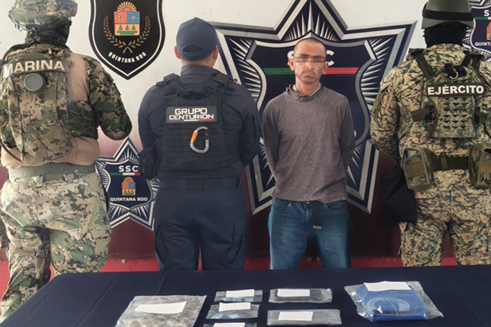 Cancún.- Autoridades detuvieron a Óscar Alberto “N” en Cancún, por su presunta participación en delitos contra la salud, durante un operativo conjunto en la zona de Puerto Juárez.
