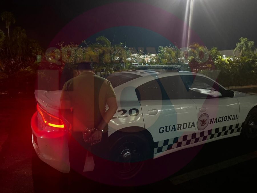 CANCÚN.- Eduardo “G”, conductor del taxi 220 de la empresa AirPort, fue detenido por elementos de la Guardia Nacional, luego que en días pasados fue denunciado por realizarle un cobro excesivo a un turista, que llevó de la terminal 3 a la 4 del Aeropuerto Internacional de Cancún.