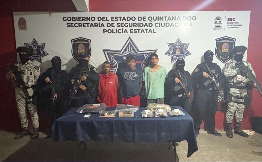 Elementos de la Secretaría de Seguridad Ciudadana, en coordinación con la Guardia Nacional; en recorridos a pie tierra en la zona de playa, a la altura del Hotel Majestic Elegance Costa Mujeres, observaron a tres masculinos reunidos e intercambiando bolsitas de plástico que en su interior se apreciaba que contenían vegetal verde con las características similares a la marihuana.