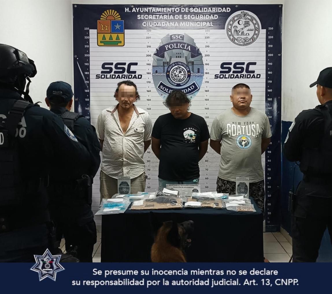PLAYA DEL CARMEN.- Se logró la detención de tres integrantes de la delincuencia organizada en el fraccionamiento In House en Playa del Carmen.