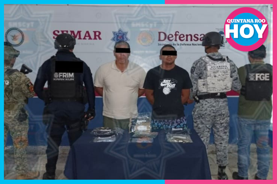 Dos hombres fueron detenidos en Cancún con más de 140 dosis de droga durante el operativo Blindaje; también les aseguraron un objeto similar a arma de fuego.