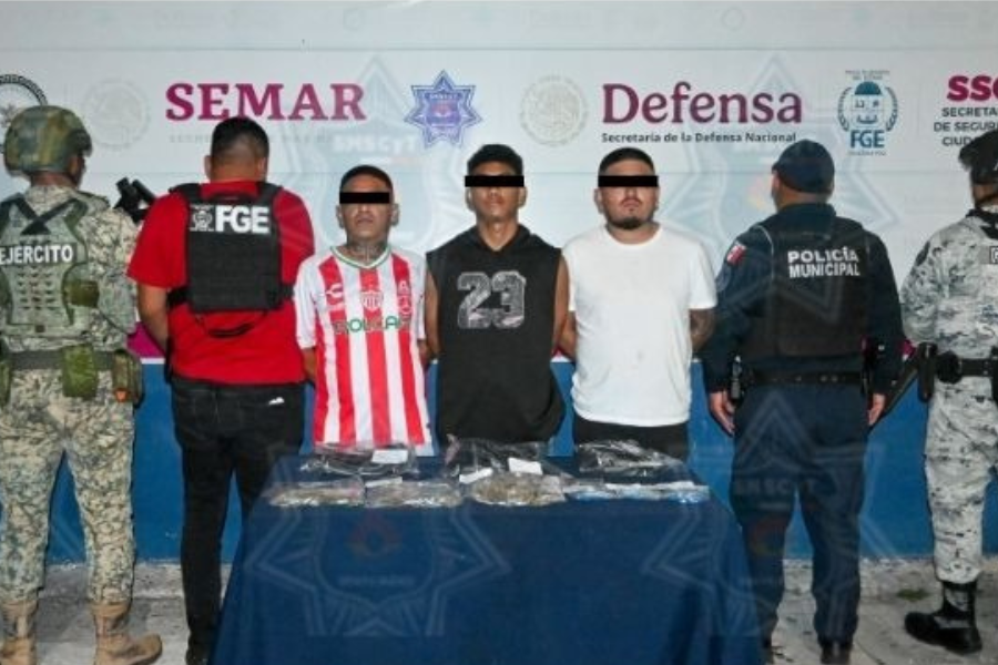 Autoridades de los tres niveles de gobierno detuvieron a tres personas en Cancún por narcomenudeo; dos estarían vinculadas a robos violentos en la ciudad.