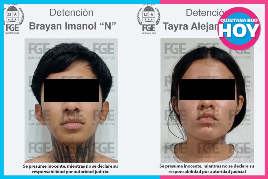 Cancún.- La Fiscalía General del Estado informó de la captura de Tayra Alejandra “N” y Brayan Imanol “N”, por hechos probablemente constitutivos del delito de feminicidio en agravio de una víctima a la que embolsaron y tiraron en una calle de Cancún.